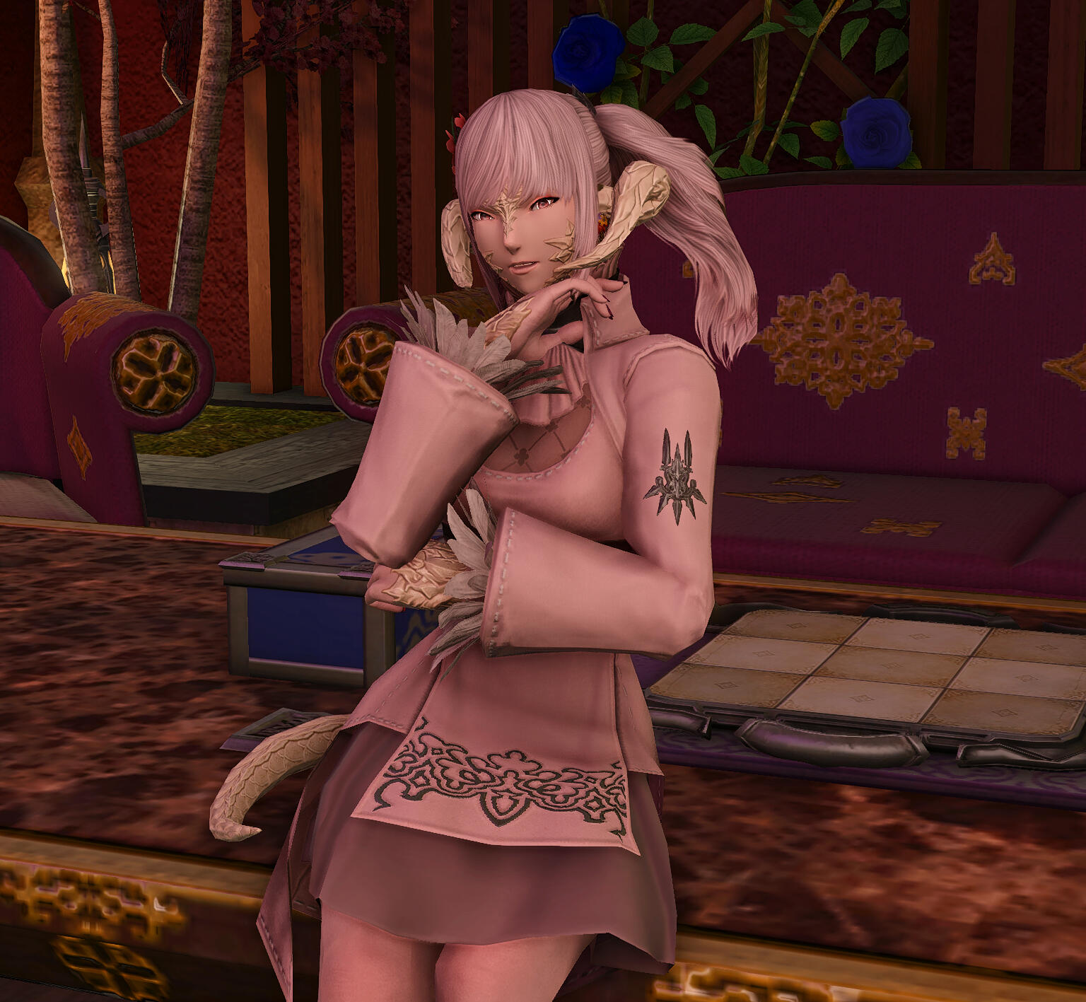 As a former worker on a riverboat, she lived most of her youth at sea and on the backwater rivers of Eorzea. She understands the nightlife is a fish eat fish world, so she might snatch away your meal or drink if you're slow on the draw! She enjoys keeping conversations light with jokes while focusing on her guest's interests.
